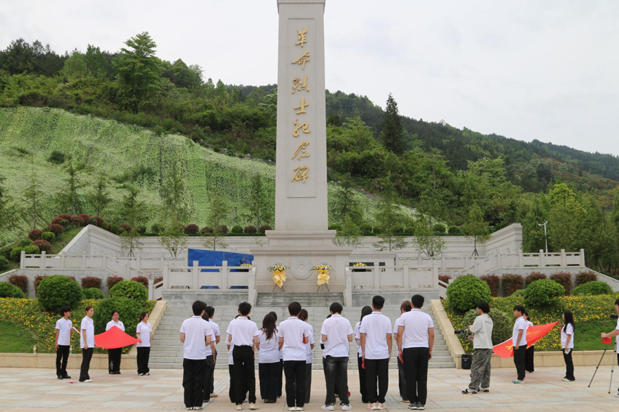 活动现场庄严肃穆,松柏苍翠环绕。全体团员统一着装、佩戴团徽,以崇敬之心开展缅怀仪式。团旗庄严入场,团员们面向团旗高举右拳,重温入团誓词,铿锵誓言回荡陵园;齐唱《光荣啊,中国共青团》,在激昂旋律中凝聚青春力量。团员代表缓步上前,向烈士敬献花篮,全体人员鞠躬默哀,深切缅怀何功伟烈士为革命事业英勇献身的崇高精神。