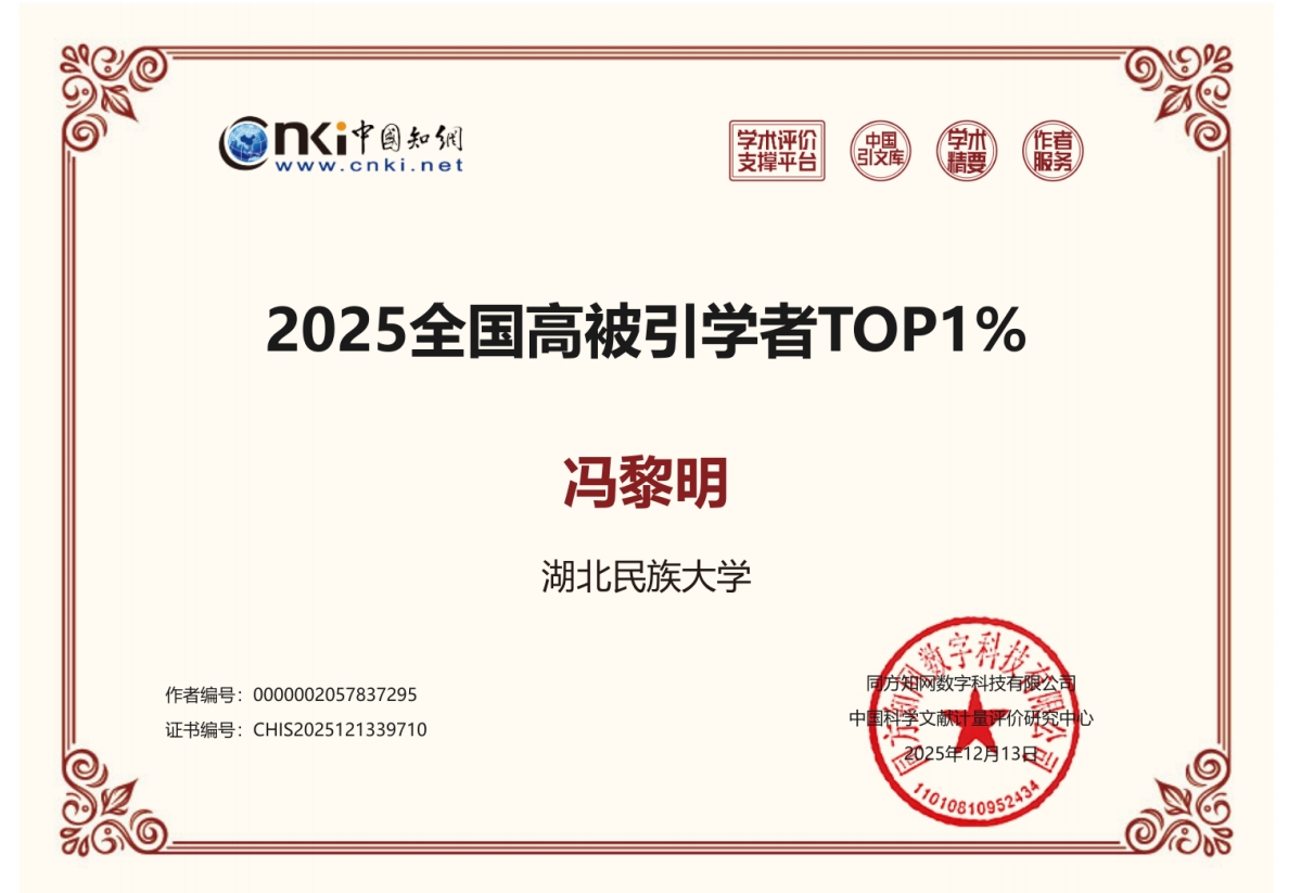 本网讯(通讯员 顾瑞瑞)近日,中国知网发布《2025中国高被引学者》榜单,我院冯黎明教授连续第二年上榜。“中国知网高被引学者”遴选活动是中国知网基于其收录的海量中文学术文献,通过客观、系统、科学的计量分析,旨在识别和表彰过去十年间在各自研究领域产生重要学术影响力、科研成果被广泛引用...
