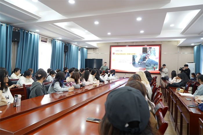 本网讯(记者 陈泽勇 丁双酉 陈礼章 解美琴)随着校媒协同育人纵深推进,本学期,媒体单位业界导师开始走入我院专业课堂,参与本科教学。11月3日,宣恩县融媒体中心新闻部主任李海波走进《电视摄像》课堂,在我院会议室为专业学生带来了生动、鲜活的经验讲座和实践指导。讲座现场李海波长期深耕基层...