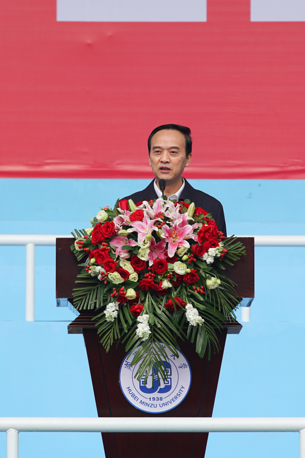 初秋的桂花园,秋高气爽,金桂飘香。9月29日上午,湖北民族大学2022级本科生、预科生开学典礼在学校五环体育场隆重举行,2022级新生汇聚在一起,共同开启青春新的航程。学校党委书记向前进在开学典礼上发表讲话,他深情寄语广大新生:争做新时代的“追梦人”。校长顿祖义主持开学典礼,他用“平安、健康、感恩、奋进”四个关键词向同学们表达深深祝福与殷殷期许。