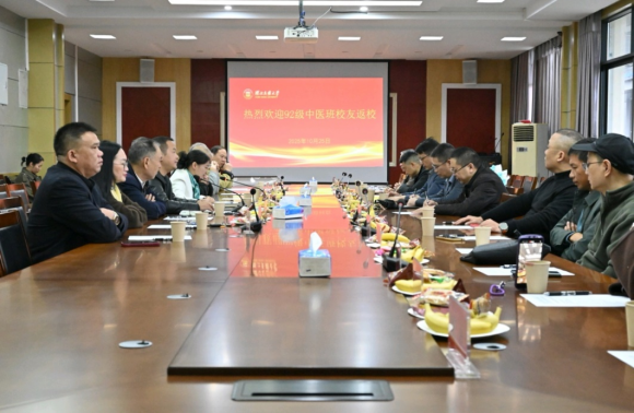 本网讯 (记者 文雅圆/文 陈俊宏/摄)10月25日,湖北民族大学医学部在B510会议室召开1992级中医班校友返校座谈会。医学部党委副书记、常务副主任陈龙菊,党委委员、副主任陈磊,1992级中医班任课教师及班级校友共同出席活动,座谈会由陈磊主持。