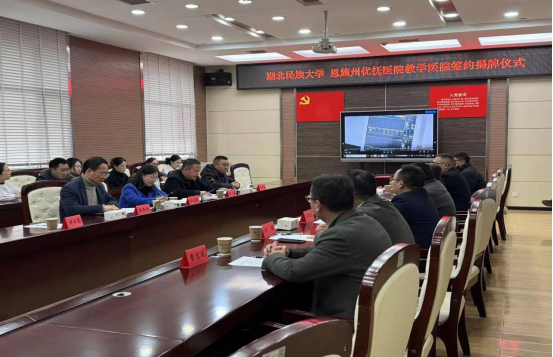湖北民族大学医学部、州退役军人事务局、州优抚医院相关负责人,以及州优抚医院部分中层干部、医务人员参加签约暨揭牌仪式。