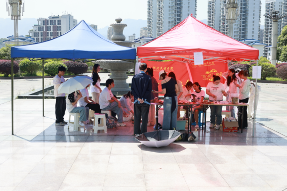 4月25日,湖北民族大学中医仲景协会与“心之桥”协会在桂花园广场,联合举办中草药拓印香囊DIY活动。